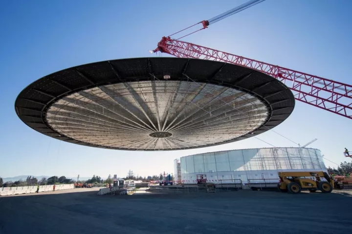 看了施工照片應(yīng)該有所了解,這個(gè)重量的屋蓋可以采用整體吊裝式施工,如果換成鋼板,大約會(huì)變成320~480噸的“大胖子”正是因?yàn)镃FRP輕質(zhì)高強(qiáng),才經(jīng)受得住周圍玻璃結(jié)構(gòu)的支撐,才有了這“漂浮”的屋頂