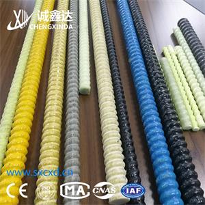 玻璃纖維筋:以高強(qiáng)玻璃纖維為增強(qiáng)材料,以合成樹(shù)脂為基體材料,并摻入適量輔助劑復(fù)合而成的復(fù)合材料,稱(chēng)為玻璃纖維增強(qiáng)塑料(英文縮寫(xiě):FRP)俗稱(chēng)玻璃鋼鋼筋。主要有“玻璃纖維鋼筋”和“玄武巖纖維鋼筋”。 (Φ6mm~Φ36mm)